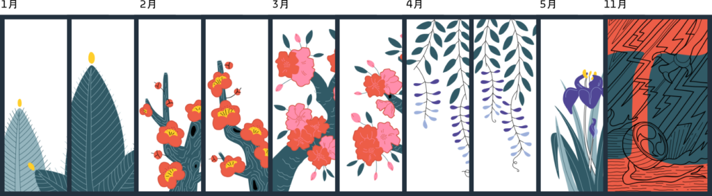 Az egyszerűség kedvéért ezt a csoportot állatoknak fogom magyarul hívni, viszont érdekesség, hogy maga a tane magot jelent. Ezért lehet furcsa, hogy pl. az írisz tane lapján nem találunk állatmotívumot. Ugyanez igaz a krizantém szettben a szakés csészét ábrázoló rendkívül különleges lapra, amiről egyébként muszáj lesz bővebben írni. Tehát ha 5-öt összeszedünk bármely tane-ből, 1 pontot jelent.